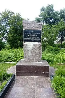Место гибели Георгия Микушева в Козельце - На месте его гибели в Козельце установлен памятный знак.