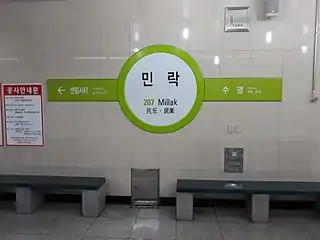 «Миллак» (кор. 민락) — подземная станция Пусанского метро на Второй линии. Она представлена двумя боковыми платформами. Станция обслуживается Пусанской транспортной корпорацией. Расположена в квартале Суён-дон административного района Суён-гу города-метрополии Пусан (Республика Корея). На станции установлены платформенные раздвижные двери.