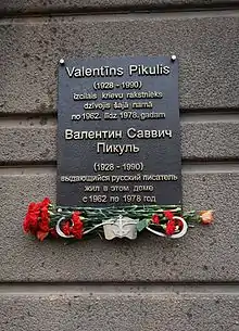 - REGNUM Балтика. В Риге открыта мемориальная доска Валентину Пикулю (Латвия) (недоступная ссылка). Дата обращения: 6 февраля 2016. Архивировано 6 февраля 2016 года.