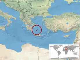 Распространена на островах архипелага Киклады в Эгейском море — Милос, Кимолос, Полиагос, Сифнос (Греция)[2][3]. По оценкам 2021 года, предполагаемая общая численность на острове Милос составляет около 3 тыс. особей, из которых 2,5 тыс. сконцентрированы в западной части острова. Численность гадюк на каждом из остальных островов ареала не превышает нескольких сотен особей[4].