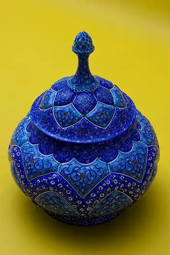 Минакари (перс. میناکاری, Mina-kari или перс. میناسازی, Mina-sazi). Традиционная иранская расписная эмаль. Традиция изготовления металлических предметов, покрытых расписной эмалью, сложилась в Иране несколько тысяч лет назад[1] (некоторые источники указывают на 3-е тысячелетие до н.э.)[2].