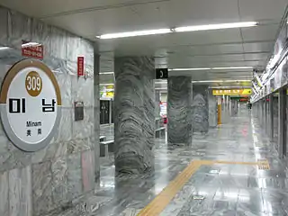 «Минам» (кор. 미남역) — пересадочная подземная станция Пусанского метро между Третьей и Четвёртой линиях; для Четвёртой линии это конечная станция. Она представлена одной островной платформой. Станция обслуживается Пусанской транспортной корпорацией. Расположена у пересечения улиц Chungnyeol-daero и Asiad-daero в квартале Oncheon-dong (1463-1 Oncheon 3 (sam)-dong) административного района Тоннэгу города Пусан (Республика Корея). На станции установлены платформенные раздвижные двери.