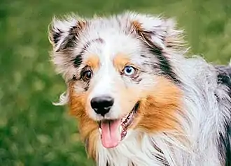 Мини аусси окраса блю-мерль с разным цветом глаз