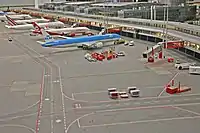 | 8 | Аэропорт Кнуффингена[36] | Май 2011 | 150 | н/д | 1000 | 75 | 15 000 | 90 | 4000 | 52 самолёта, ок. 250 полётов в день |