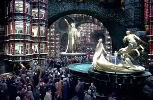 В финальной книге выясняется, что когда Министерство перешло во власть Волан-де-Морта, фонтан Волшебного братства заменили чёрной скульптурой волшебника и волшебницы, сидящих на тронах, которые на самом деле представляли собой сотни переплетённых тел маглов. В основании монумента была выгравирована надпись «Магия — сила». Статуя демонстрировала превосходство чистокровных волшебников над всеми остальными, что было характерно для режима Волан-де-Морта в целом. Некоторые видят в этом намёк на фашистский режим Германии в прошлом.[3] Скорее всего, статуя была уничтожена после окончательного падения Волан-де-Морта.