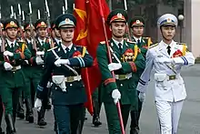 Основой вооружённых сил Вьетнама является Вьетнамская народная армия (ВНА)[6] с регулярными силами в 450 000 солдат и офицеров и резервными силами в размере около 5 миллионов человек. Наземные подразделения ВНА состоят из четырёх армейских корпусов: 1-го, 2-го, 3-го и 4-го; шести родов войск: артиллерия, бронетанковые войска, сапёры, связь, инженерные и химвойска; семи военных округов и одного командования: 1-й, 2-й, 3-й, 4-й, 5-й военный округа, 7-й военный округ, 9-й военный округ и верховное командование столицы города Ханоя[7]. Пограничная служба, береговая охрана, военно-воздушные силы, противовоздушная оборона и военно-морской флот организованы как рода войск ВНА, в частности, военно-морской флот разделён на пять военно-морских районов (с 1-го по 5-й).[8]