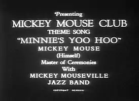 Мультфильм начинается без заглавной заставки. Шторы открываются, и оркестр из мультфильма «Глупости Микки» играет на инструментах. Микки начинает петь песню «Minnie's Yoo Hoo». Когда занавес закрывается появляется текст песни, и диктор, играя на пианино, поёт. Когда занавес снова открывается, Микки вместе с дикторским голосом поёт финал песни и хлопает зрителю.