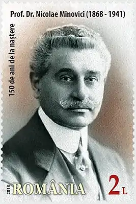 ![]() Почтовая марка Румынии 2018 г., посвящённая 150-летию со дня рождения Николае Миновичи | |