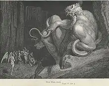 В подземном царстве он, по «Одиссее», царит над умершими[26]. Минос судит умерших, а они «его приговора, кто сидя, кто стоя, / Ждали в пространном с вратами широкими доме Аида» (Од. XI 570—571)[27]. Настоящим судьёй в царстве теней его вместе с Эаком и Радамантом делает позднейшее сказание[28], вероятно, в воспоминание его деятельности как законодателя. В позднейшее время стали различать двух Миносов, I и II, чтобы иметь возможность разделить приуроченный к Миносу слишком обильный мифологический материал; при этом Минос I считался сыном Зевса и Европы, а Минос II — внуком Миноса I, мужем Пасифаи и отцом Девкалиона, Ариадны и т. д. В «Божественной комедии» Данте Минос предстаёт в виде демона, змеиным хвостом, обвивающим новоприбывшую душу, указывающего круг ада, в который предстоит душе спуститься.