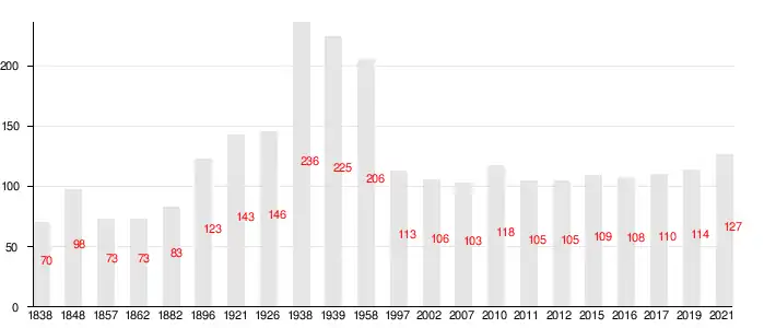 | 1838 | 1848 | 1862 | 1896 | 1926 | 1939 | 1958[32] |