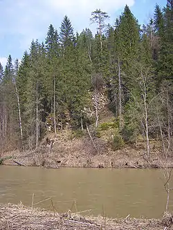 По берегам, на склонах гор — смешанный лес, непосредственно вблизи воды — ольшаники. Из земноводных во множестве встречается травяная лягушка. Из птиц наиболее обычны серая цапля, перевозчик, оляпка, обыкновенная чечевица, чиж, зяблик, горная трясогузка, зарянка, садовая камышовка, камышовка-барсучок, чёрный коршун, обыкновенный канюк, черныш, рябинник, певчий дрозд и др. В прибрежных лесах встречается обыкновенная белка, есть бобр.