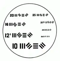 - Штриховая мира — рисунок образован чередующимися тёмными и светлыми прямоугольными полосками с закономерно изменяющейся частотой.