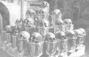 Есть там и несколько глав, от которых из зубов источается миро в сосуды. Его считают весьма целебным[2]:40.