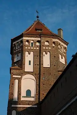 В башне над воротами на втором ярусе разместилась часовня св. Христофора, а на третьем были установлены часы. Из часовни пробили выход прямо к княжеским покоям на север и боевым галереям на юг. На недостроенной южной стене была построена новая боевая галерея, а также была переделана старая западная[52]. Вся постройка в целом фактически превратилась в дворец[56].