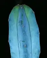 Поверхность стеблей, особенно молодых, — голубовато-зелёная, будто покрытая голубым инеем[4][5].