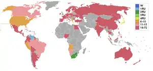 | Вернулись | Аргентина, Барбадос, Белиз, Новая Зеландия, Тайвань |