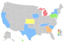 - Этот год стал третьим из семи, когда участницы были представлены по сторонам света. Стоит отметить, что в этом году штаты были обозначены иначе, которое давало Бюро переписи населения США[11]. (Смотри Список регионов США#Регионы Бюро переписи населения США для получения дополнительной информации о регионах.)