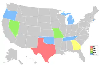 Карта США, показывающая штаты-участницы финала «Мисс США 2001»