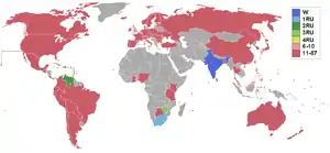 - Бермудские острова, Гондурас, Литва, Мальта, Намибия, Уганда, и Уругвай не удалось отправить своих делегатов.