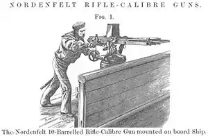 Также митральезы крупного калибра (25…37 мм) были введены во флоте в качестве «противоминного» (предназначенного для отражения атак миноносцев) оружия, причём здесь они имели ощутимо больший успех, чем на суше. Но и флотские митральезы были позднее вытеснены шрапнелью (так называемыми «сегментными снарядами» к обычным морским орудиям).