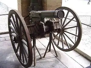 Митралье́за (фр. mitrailleuse, от фр. mitraille — картечь; в России картечница[1]) — изначально, употреблявшееся во второй половине XIX века французское название скорострельного многоствольного артиллерийского орудия, которое вело залповый огонь патронами винтовочного калибра и имело полностью ручную перезарядку.
