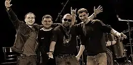 ![]() Краснодеревщик (первый слева) и группа Многоточие | |