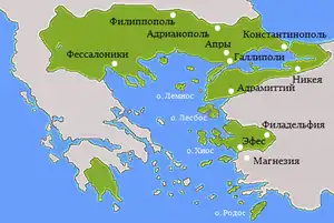 В октябре 1319 г. Михаил IX был назначен отцом управлять Фессалониками, где, по сведениям Григоры, должен был попытаться положить конец длившейся много лет вражде между фессалийцами и пеласгами[34].
