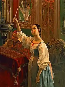 Девушка, ставящая свечу перед образом (1842). ГТГ