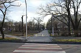 Вокруг площади действует круговое одностороннее движение. В северо-восточном углу парка находиться автобусная остановка, через которую следует маршрутка 191.[3]