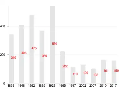 Согласно ревизии 1834 года в деревне было 77 дворов, всего душ 162 м.п. и 216 ж.п.[7]