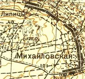 МИХАЙЛОВСКАЯ — деревня принадлежит государыне императрице Александре Фёдоровне, число жителей по ревизии: 162 м. п., 178 ж. п.[8] (1838 год)
