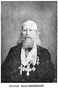 Василий Яковлевич Михайловский (1834—1910) — протоиерей Русской православной церкви, проповедник, российский духовный писатель , поэт и общественный деятель; магистр Санкт-Петербургской духовной академии. Член Императорского православного палестинского Общества по прозвищу «Петербургский златоуст».