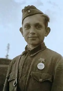 По просьбе мальчика, его зачислили в армию и он начал служить в отдельной разведроте в одной из частей 33-й стрелковой дивизии[1] Калининского фронта.
