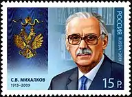 Серге́й Влади́мирович Михалко́в (13 марта 1913, Москва — 27 августа 2009, там же) — советский и российский писатель, поэт, драматург и публицист, военный корреспондент, сценарист, баснописец, общественный деятель. Соавтор текста гимна Советского Союза и автор текста гимна Российской Федерации, председатель Союза писателей РСФСР с 1970 по 1990 годы, а с 1992 по 2008 год — председатель Международного сообщества писательских союзов. Наибольшую известность Михалкову принесли его произведения для детей.