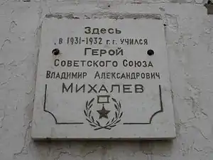 - Мемориальная доска в память о Михалёве установлена Российским военно-историческим обществом на здании Ртищевской средней школы № 9, где он учился.
