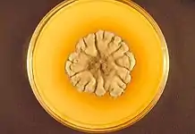 Виды грибков мицетомы Nocardia (в том числе Nocardia asteroides и Nocardia brasiliensis) производят желтые споры, и Streptomyces (в том числе Streptomcyes somaliensis) производят желтые или красные споры.