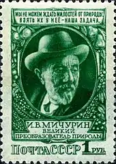 Ива́н Влади́мирович Мичурин (15 [27] октября 1855, небольшое поместье Вершина близ деревни Долгое, Пронский уезд, Рязанская губерния[5] — 7 июня 1935, Мичуринск, Тамбовская область) — русский, советский биолог и селекционер, автор многих сортов плодово-ягодных культур, доктор биологии (1934), Заслуженный деятель науки и техники РСФСР (1934), почётный член Академии наук СССР (1935), академик ВАСХНИЛ (1935), почётный член Чехословацкой земледельческой академии (1935). Награждён орденами Св. Анны 3-й степени (1912), Ленина (№ 165, июнь 1931) и Трудового Красного Знамени. Три прижизненных издания собраний сочинений.