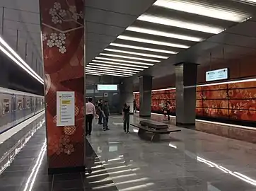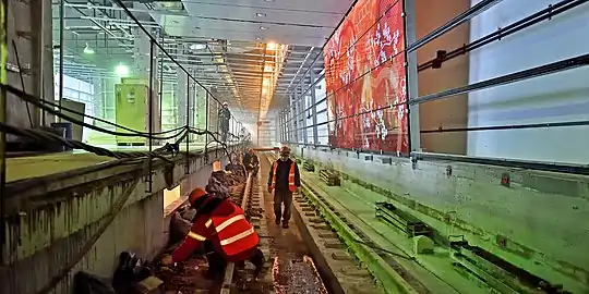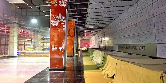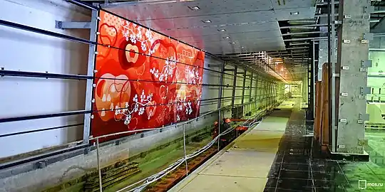 - 22 февраля 2018 года. Началась установка декоративных панелей на восточной путевой стене станции[17].