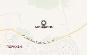 МИШКИНО — деревня госпожи Остафьевой, по просёлочной дороге, число дворов — 10, число душ — 32 м. п.[7] (1856 год)