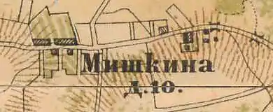 Согласно «Топографической карте частей Санкт-Петербургской и Выборгской губерний» 1860 года деревня Мишкина насчитывала 9 дворов[8].