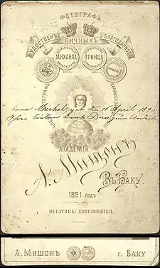 К началу ХХ в. Мишон владеет типографией-фототипией, в которой печатаются открытки с видами Баку и других местностей Азербайджана. Также он издавал журнал "Кавказ и Средняя Азия", в котором публиковал свои снимки и заметки[3].