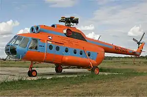 Ми-8 (В-8, изделие «80», по кодификации НАТО: Hip — «Бедро») — советский/российский многоцелевой вертолёт, разработанный ОКБ М. Л. Миля в начале 1960-х годов. Самый массовый двухдвигательный вертолёт в мире (в общей сложности построено более 12 тыс. экземпляров всех модификаций); входит в список самых массовых вертолётов в истории авиации[7].