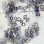 У большинства видов млечников споры шаровидной (Q = 1,06…1,15), широкоовальной (Q = 1,16…1,30) или овальной (Q = 1,31…1,60) формы, амилоидные. Наиболее крупные споры — у L. acerrimus (10—14 × 9—11 мкм)[11], размеры спор у других видов в основном лежат в пределах 6—10 х 5—8 мкм. Рельеф на спорах представлен в виде отдельных бородавок и гребней, расположенных хаотично, либо формирующих неполную, полную или зебровидную сеть. Цвет спорового порошка видоспецифичен, не изменяется с возрастом и при хранении; в пределах рода варьирует от почти белого до жёлтого и оранжевого различной интенсивности[12].