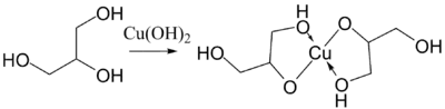Многоатомные спирты образуют комплексы с ионами некоторых металлов, что является качественной реакцией на многоатомные спирты. Так, глицерин реагирует с гидроксидом меди в присутствии щелочи с образованием ярко-голубого соединения (глицерат меди)[1].