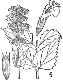 Многолетнее травянистое растение высотой от 45[4] до 150 см; диаметр отдельного растения может достигать 90 см[5]. Стебли прямостоящие, ребристые, относительно мягкие, простые или ветвистые. Листья супротивные, простые, ланцетные, с зубчатыми краями, длиной до 8 см[4]. Цветки зигоморфные, двугубые, образуют на верхушках стеблей плотные колосовидные соцветия. Венчики тёмно-розовые (розово-голубые, фиолетовые). Время цветения на родине — с июня по сентябрь[5].