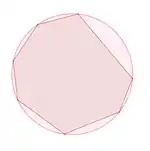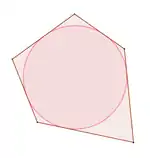 - Выпуклый четырёхугольник называется внеописанным около окружности, если продолжения всех его сторон (но не сами стороны) касаются некоторой окружности.[3] Окружность при этом называется вневписанной. Вневписанная окружность существует также и у произвольного треугольника.