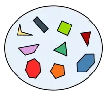 - Система множеств (множество множеств) — множество, все элементы которого также являются множествами, обычно схожего происхождения (например, все они могут быть подмножествами некоторого другого множества)[7].