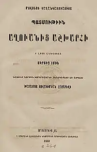 - Wolfgang Schulze. Old Udi Оригинальный текст (англ.)[показатьскрыть]A famous passage in the Armenian patmowt‘iwn (ašxarhi) ałowanic (History of the Albanians) by Movsēs Kałankatuac‘i (or Dasxowranc‘i; 7th century (?)) tells us that Mesrop has “created with the help [of the bishop Ananian and the translator Benjamin] an alphabet for the guttural, harsh, barbarous, and rough language of the Gargarac‘ik‘” (Pat.Ał. Book II, 3, compare Dowsett 1961:69).
