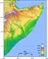 Река Уэби-Шабелле, текущая из Эфиопии, проходит вблизи от города на расстоянии 30 км от Индийского океана и поворачивает на юго-запад. Река, которая обычно пересыхает в феврале и марте, используется для орошения плантаций сахарного тростника, хлопка и бананов.