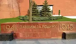 Слева от могилы стена из красного кварцита с надписью: «1941 Павшим за Родину 1945». По правой стороне от захоронения, вдоль Кремлёвской стены, идёт аллея с блоками из порфира. Площадка, на которой они установлены, приподнята тремя ступенями над уровнем дорожек Александровского сада. На каждой из тринадцати тумб с названиями городов-героев также помещено чеканное изображение медали «Золотая Звезда». Тумбы расположены в порядке присвоения городам звания героя:
